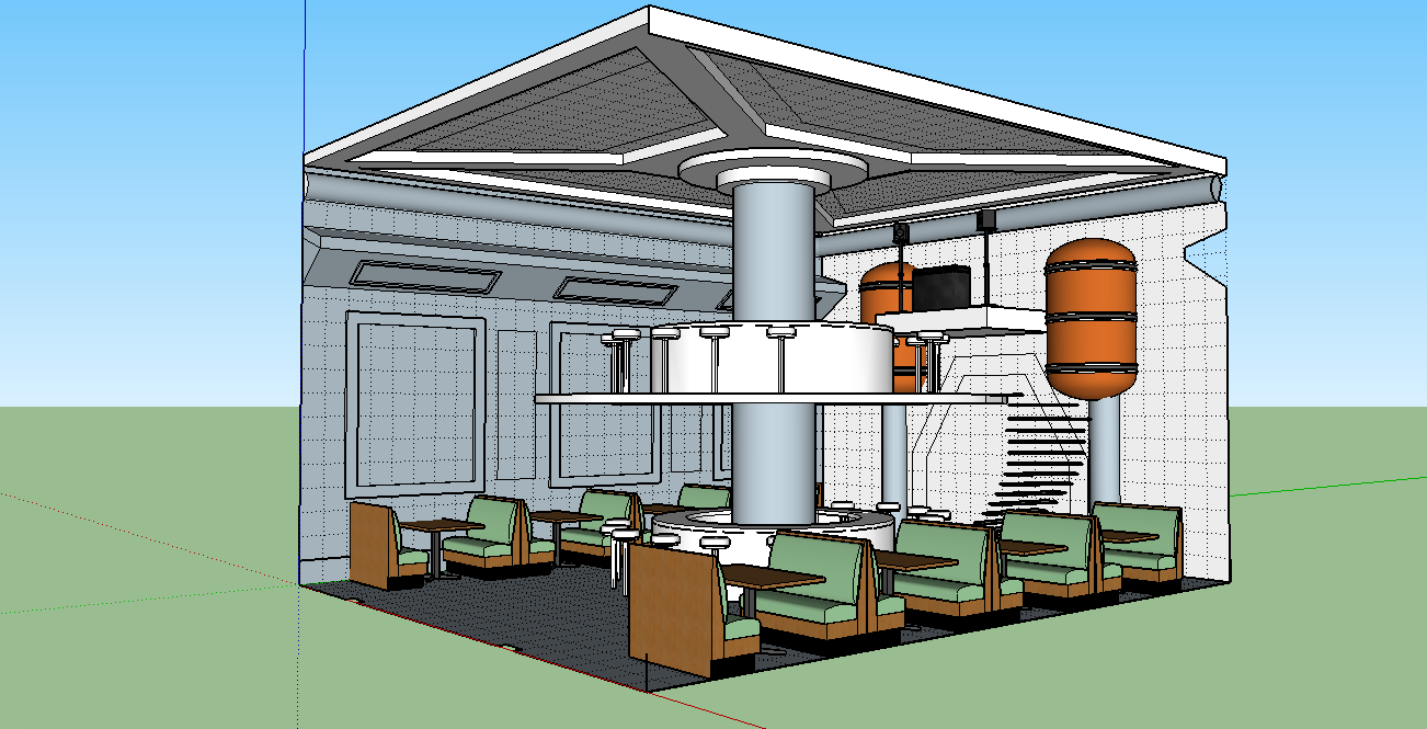 The DJ bot at Looga’s bar. When I began this design I thought I knew exactly what JayJay would look like, but I quickly discovered it was not working, and I had to come up with something new. I was very satisfied with the final result.