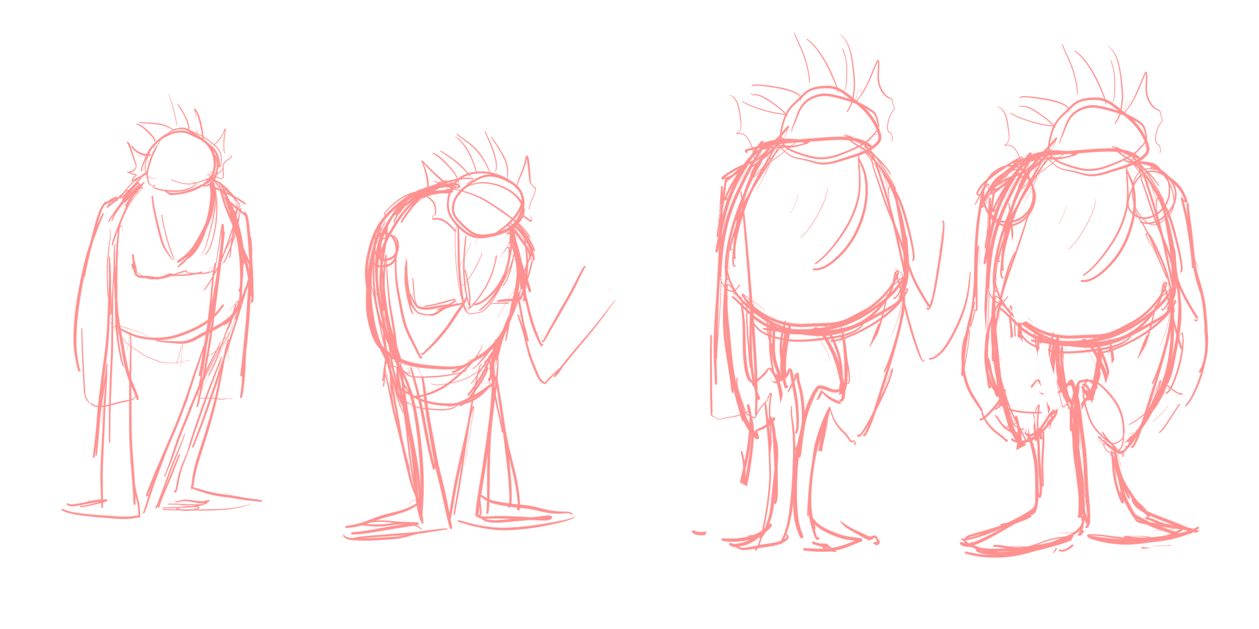 Looga’s bartender. I had no idea what Mixer would look like going in. Funnily enough, the final design didn’t come from the original silhouettes at all.