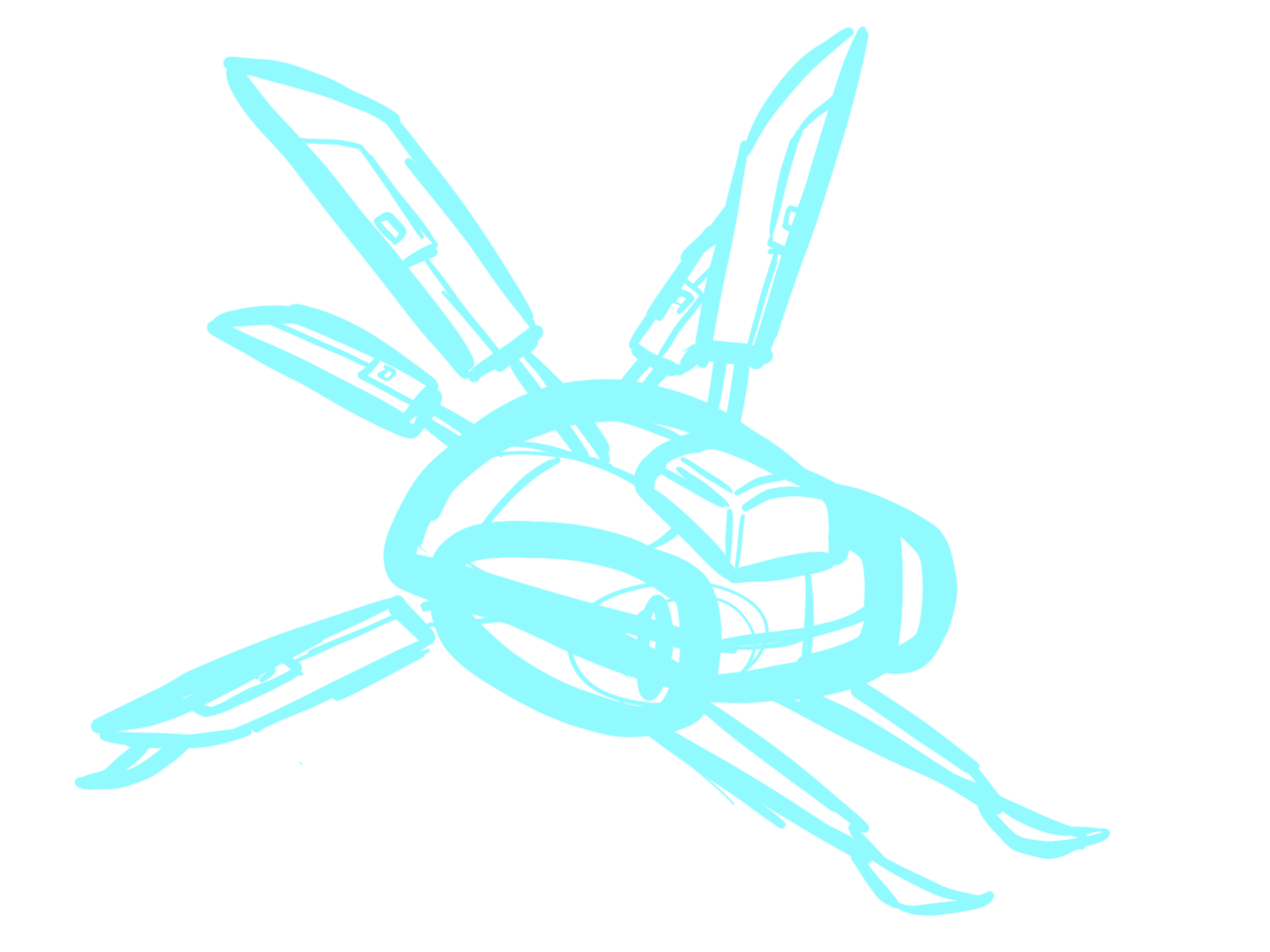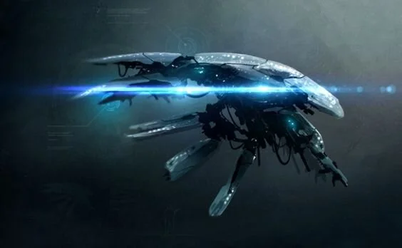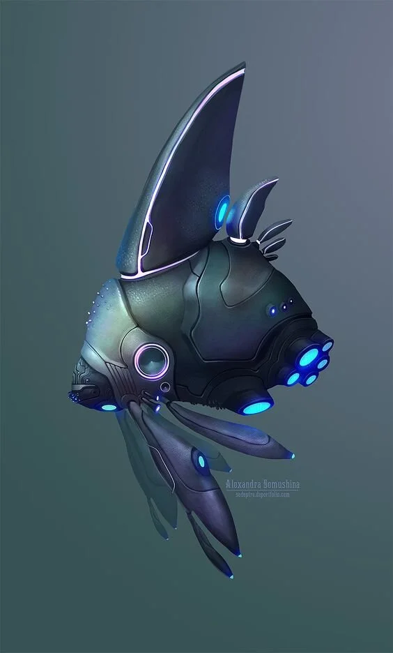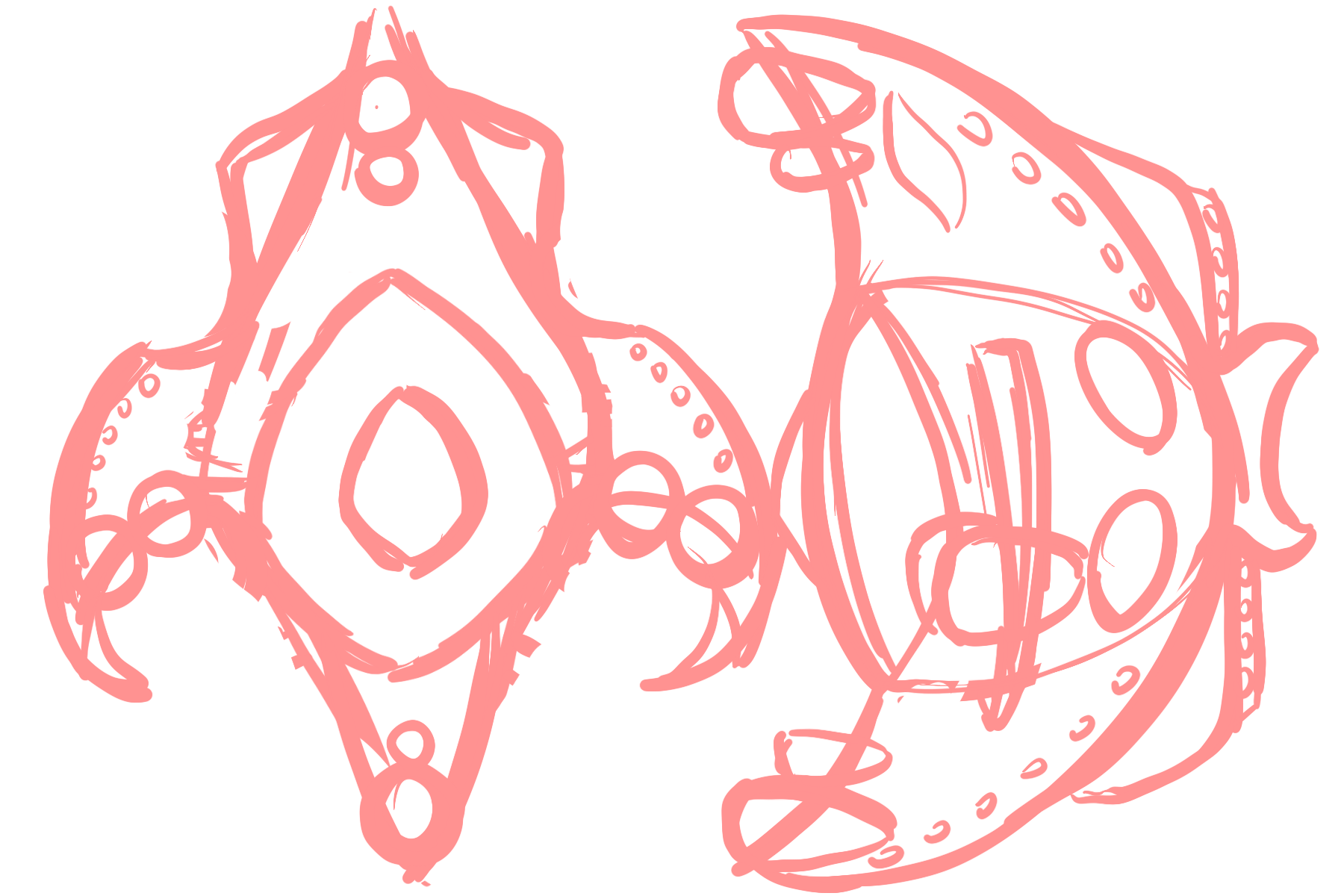 A ship that our protagonists steal towards the beginning of the story. I started off with insects in mind, then found spaceship designs based on fish and took inspiration from that as well.