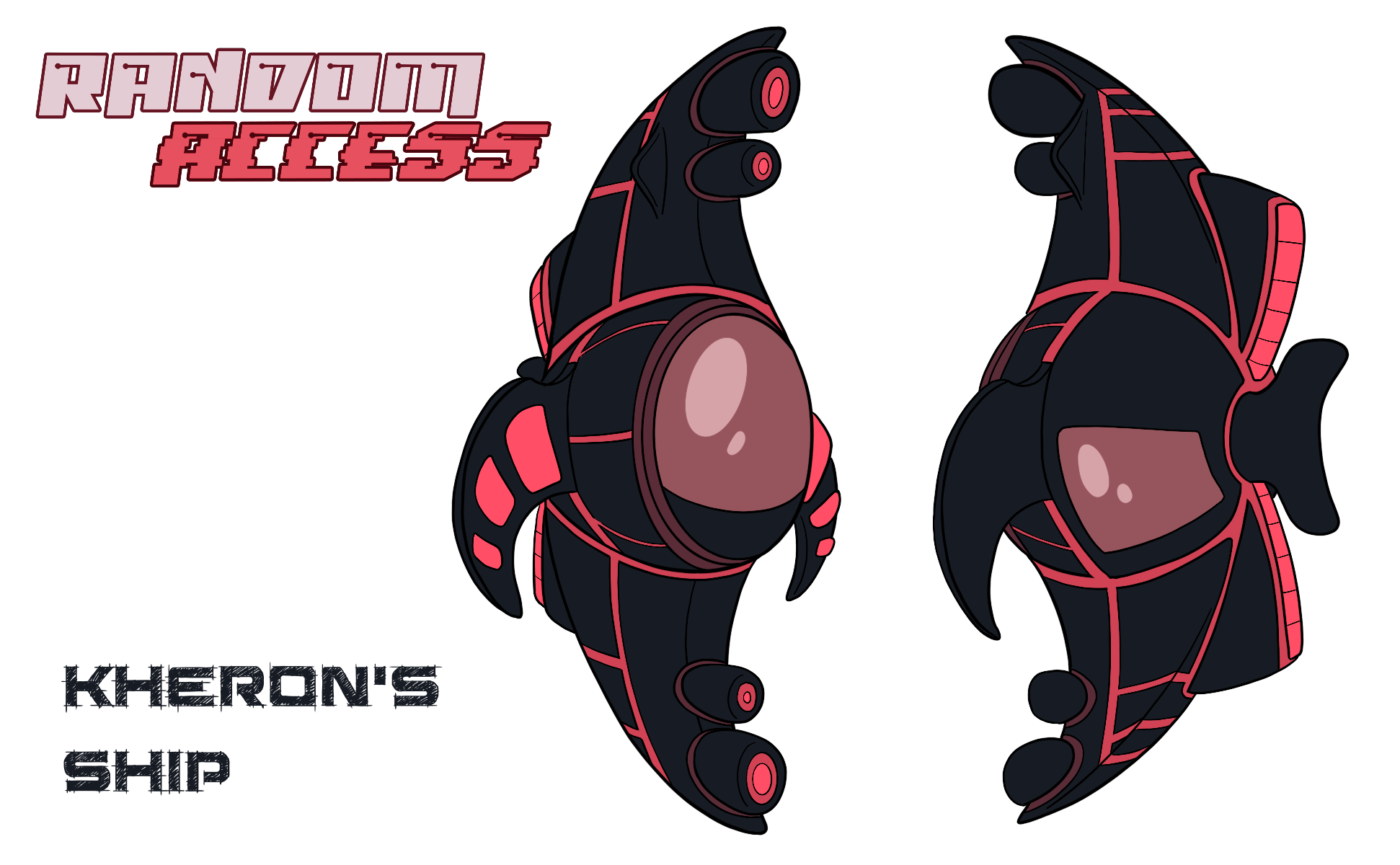 Taking inspiration from multiple different ship designs, I gave Kheron’s ship a less conventional shape. From the side, it looks a bit like the silhouette of a manta ray, a shape I was looking for in the design.